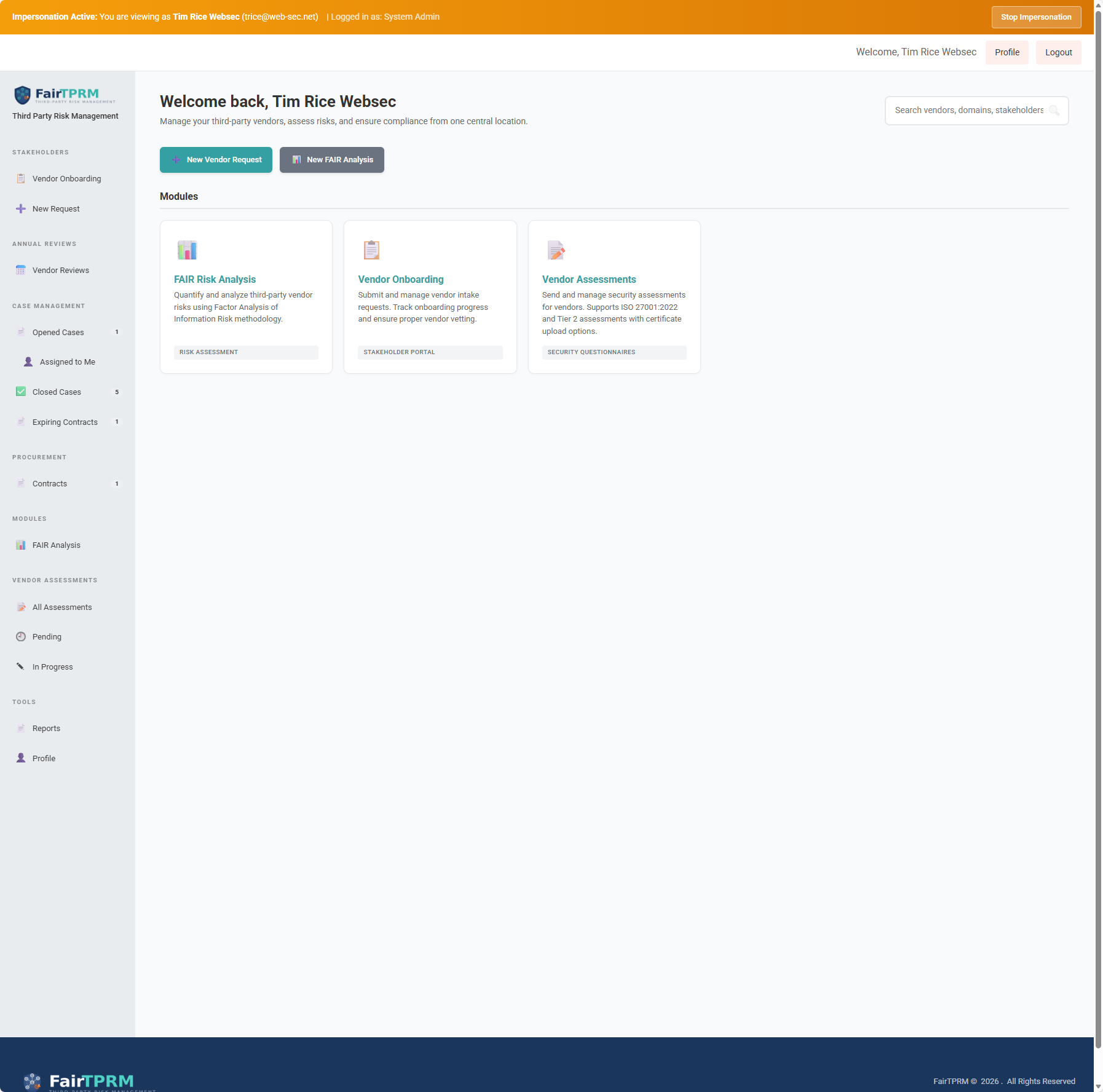 See Fair TPRM in action — from dashboards and risk analysis to vendor lifecycle management and administration.