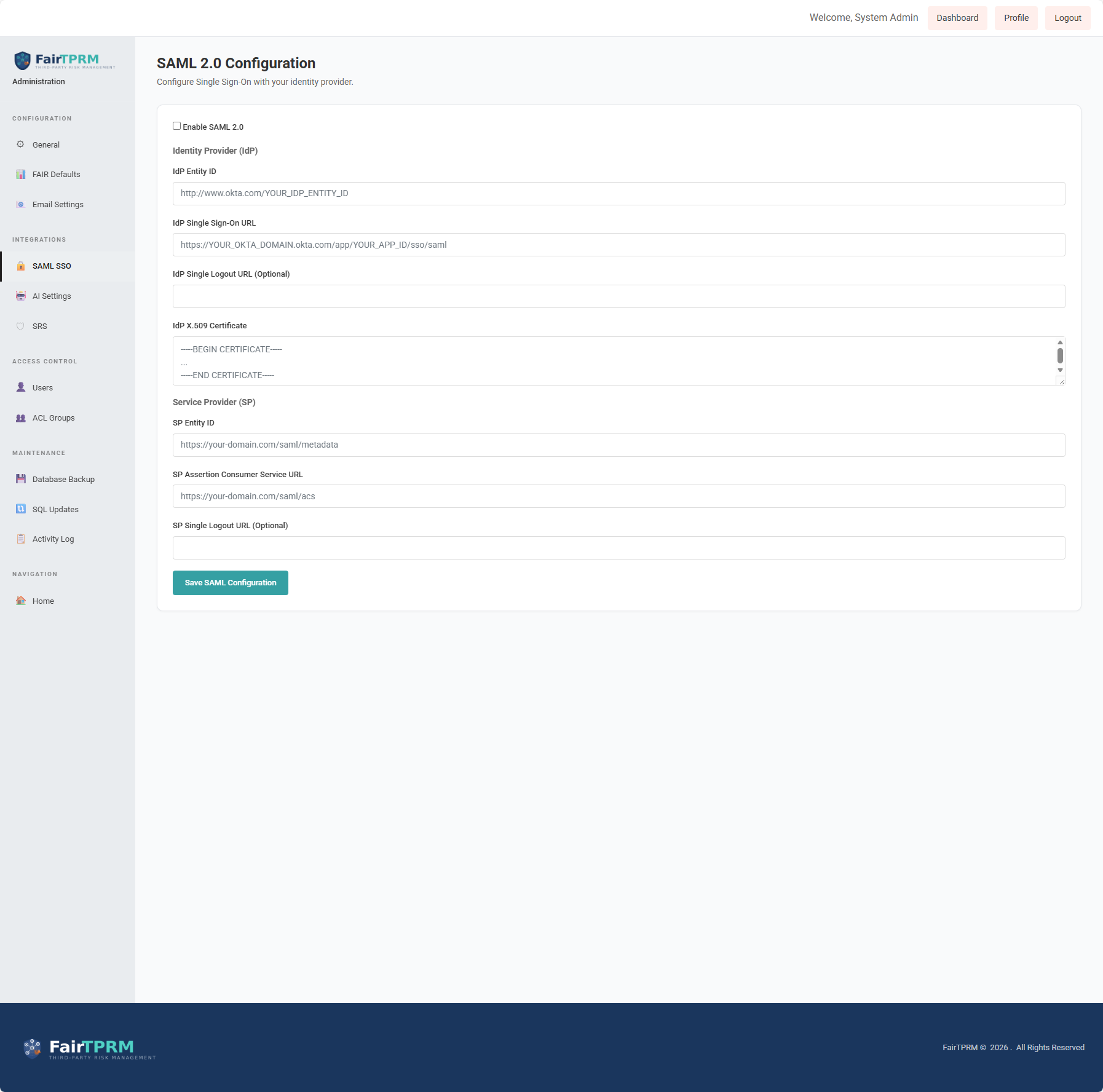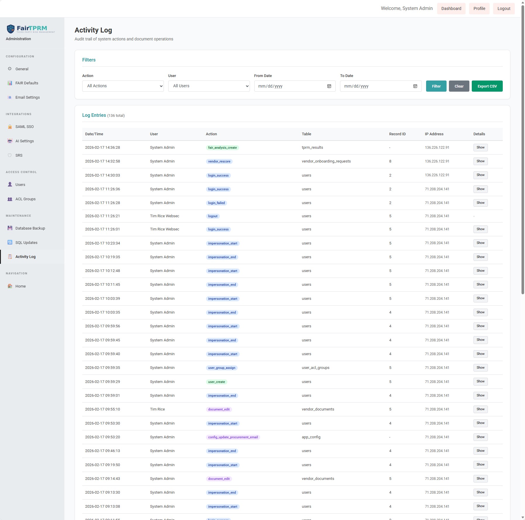 | Administrator | Full System Access | IT Security leadership, system admins |