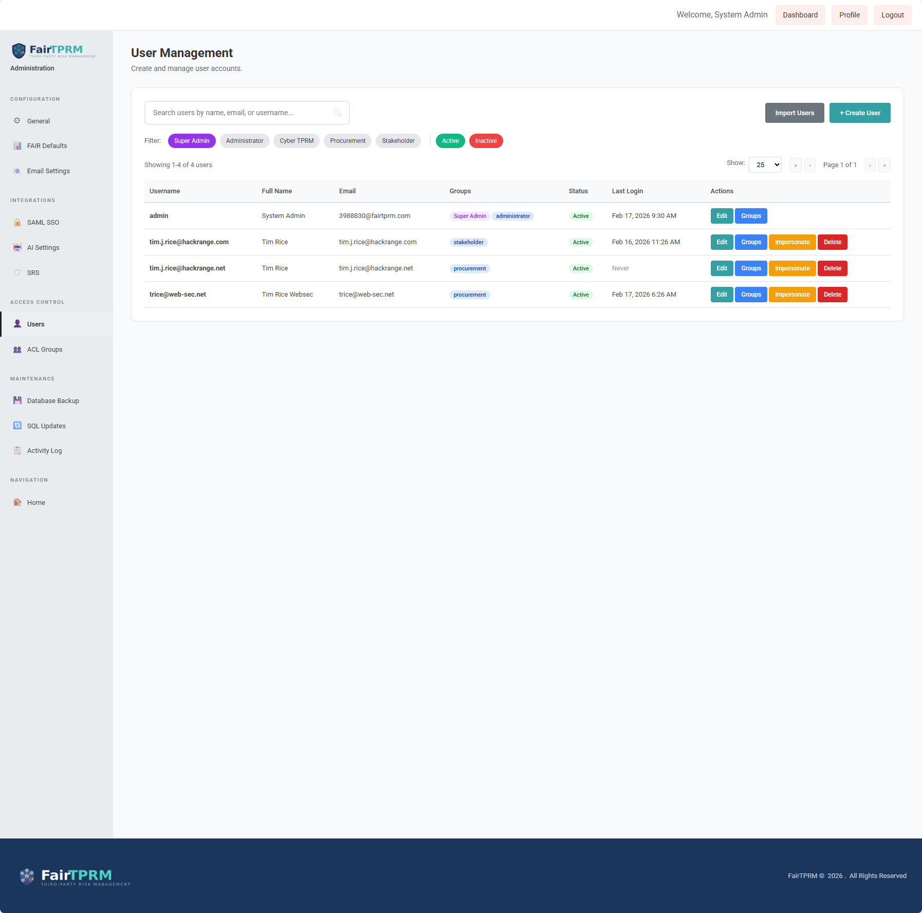 Fair TPRM was built from the ground up as one unified platform. Vendor risk management, GRC compliance, risk quantification, security monitoring, and lifecycle governance all share the same database, the same permission model, and the same audit log.
