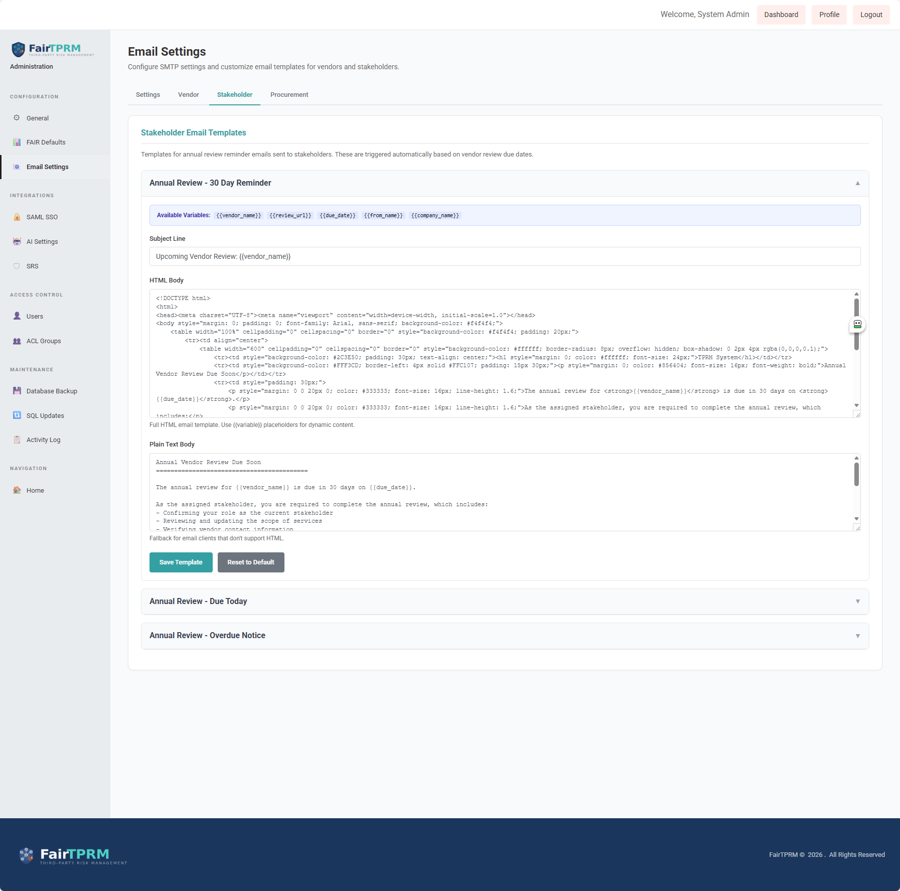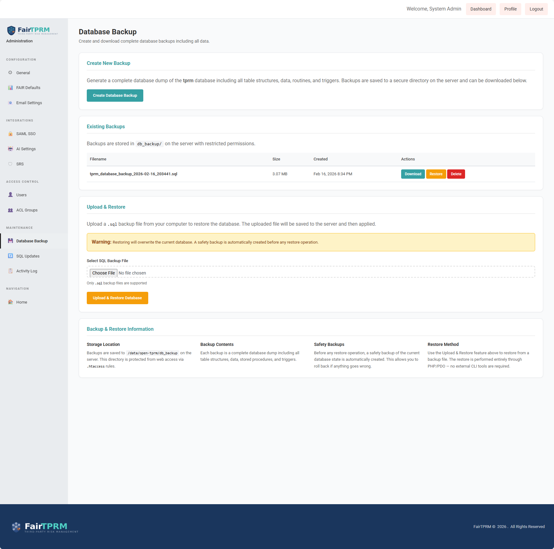 Fair TPRM was built from the ground up as one unified platform. Vendor risk management, GRC compliance, risk quantification, security monitoring, and lifecycle governance all share the same database, the same permission model, and the same audit log.