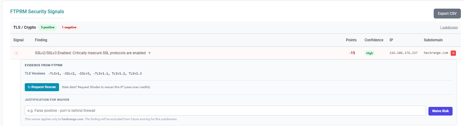Built-in API integrations with UpGuard and Shodan provide continuous external scanning with admin-tunable signal weights per scoring category. You decide which security signals matter most to your organization.